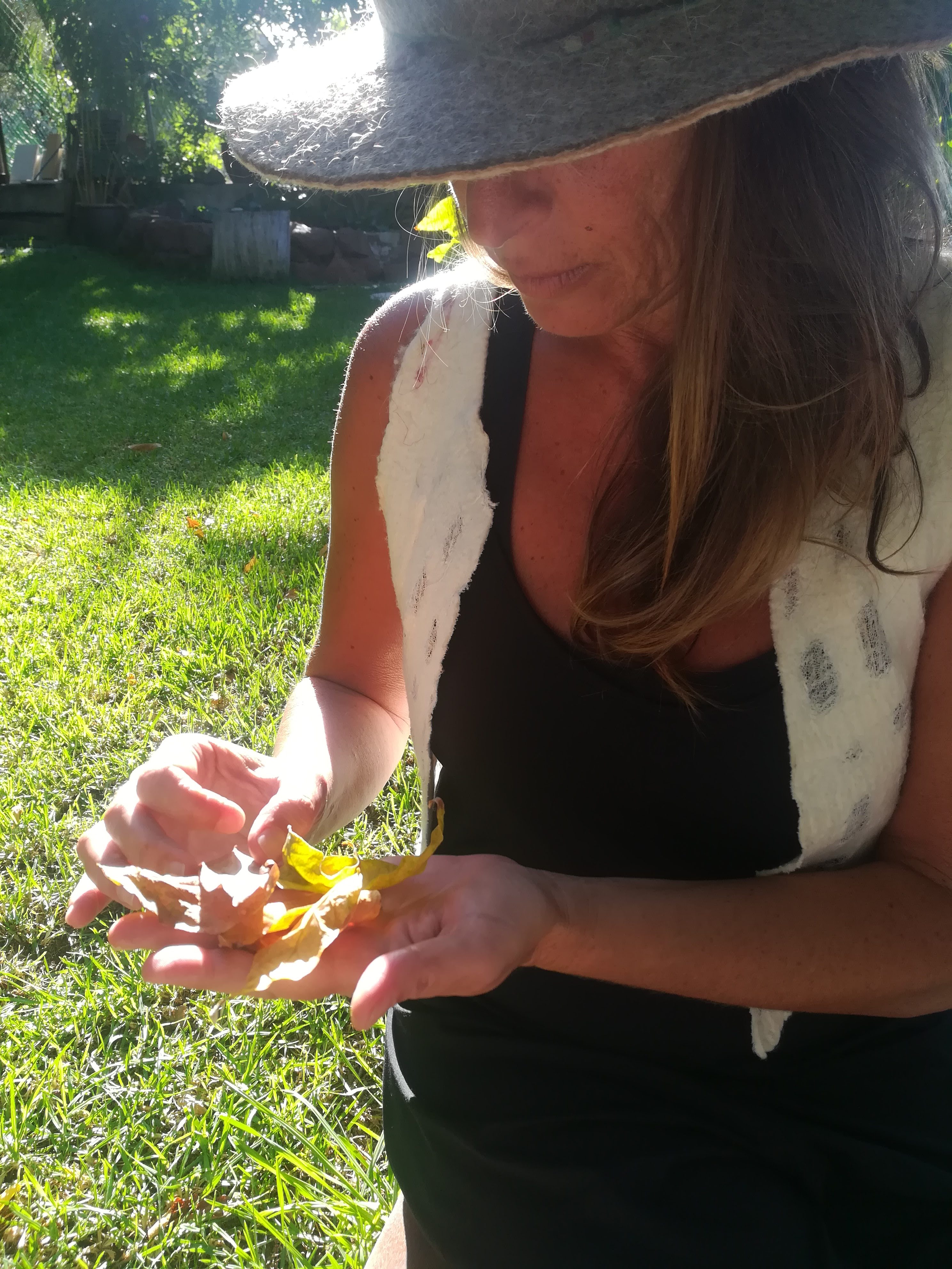 Obra textil figurativa de gran expresividad que explora la conexión entre lo femenino y la naturaleza. Realizada en fieltro húmedo con detalles bordados a mano en hilos de seda y lana canaria.