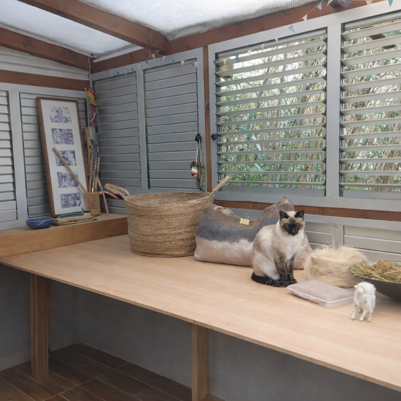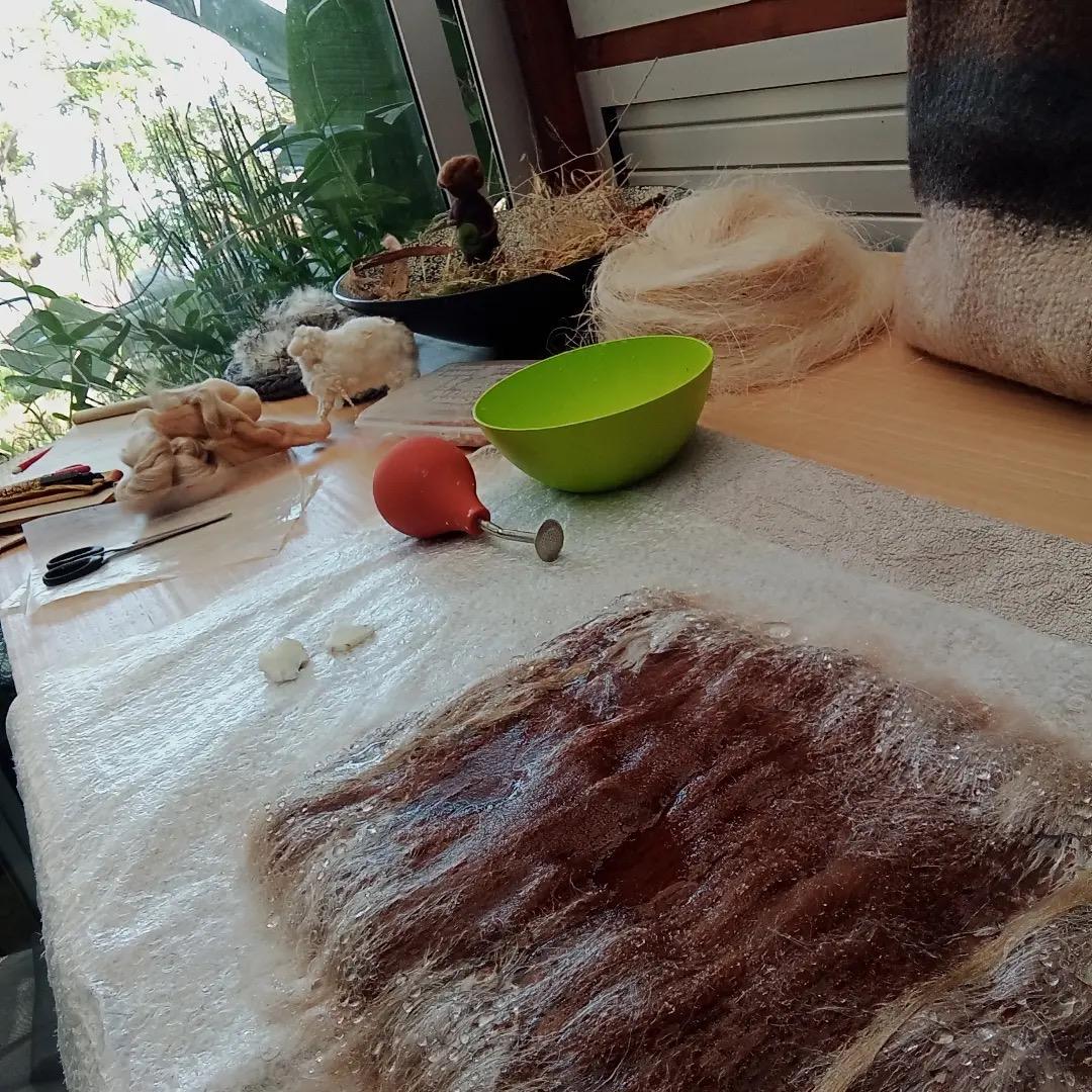 Trabajo principalmente con fieltro y lana canaria, creando piezas únicas —arte, decoración, indumentaria, esculturas y objetos funcionales— donde cada fibra es tratada con respeto y cada proceso se convierte en un acto consciente. Me inspiran la memoria ancestral del oficio textil, la conexión con la tierra y el ritmo pausado de lo hecho a mano. Cada creación nace desde la intención y la presencia, convirtiéndose en un objeto con alma y significado.